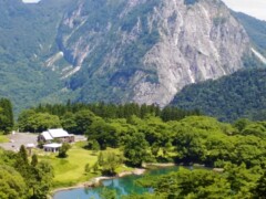 切り立った岩肌には盆栽の王様「糸魚川真柏」が自生し、直下の峡谷は国指定天然記念物「小滝川ヒスイ峡」として自然の雄大さや美しさを感じることができます。登山道は岡集落からのルートと小滝川ヒスイ峡からのルートの2つがあります。